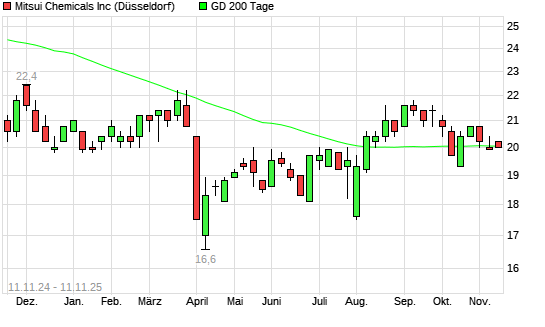 Mit dem Anstieg auf 20,40 EUR hat die Mitsui Chemicals-Aktie am 10.11.2025 die 200-Tage-Linie nach oben gekreuzt.