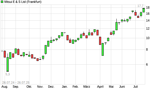 Mit dem Anstieg auf 17,70 EUR hat die Mitsui E&S Holdings-Aktie (ISIN JP3891600003) am 25.07.2025 ein neues 10-Jahres-Hoch erreicht und damit den Kurs vom 22.07.2025 eingestellt.