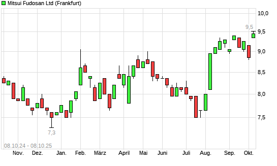 Mit dem Anstieg auf 9,50 EUR hat die Mitsui Fudosan-Aktie (ISIN JP3893200000) am 07.10.2025 ein neues 12-Monats-Hoch erreicht und damit den Kurs vom 12.09.2025 eingestellt.