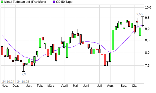 Mit dem Anstieg auf 9,55 EUR hat die Mitsui Fudosan-Aktie am 23.10.2025 die 50-Tage-Linie nach oben gekreuzt.