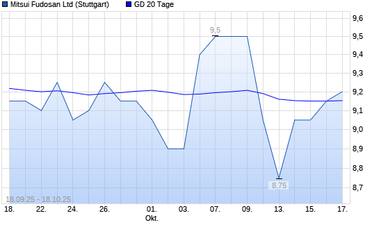 Mit dem Rücksetzer auf 9,05 EUR hat die Mitsui Fudosan-Aktie am 17.10.2025 die 20-Tage-Linie nach unten gekreuzt.