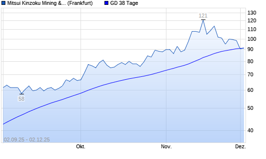 Mit dem Rücksetzer auf 90,50 EUR hat die Mitsui Mining & Smelting-Aktie am 01.12.2025 die 38-Tage-Linie nach unten gekreuzt.