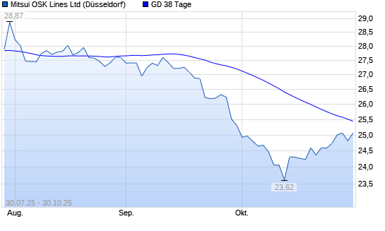 Mit dem Anstieg auf 25,87 EUR hat die Mitsui OSK Lines-Aktie am 29.10.2025 die 38-Tage-Linie nach oben gekreuzt.