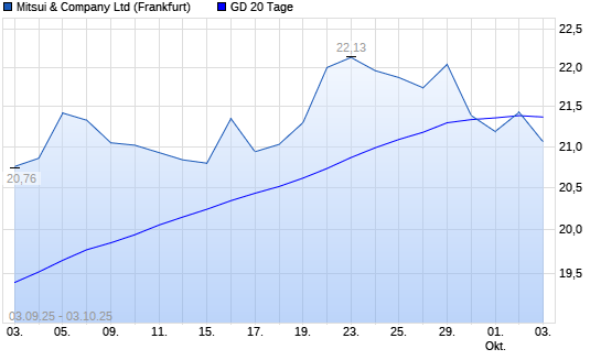 Mit dem Anstieg auf 21,43 EUR hat die Mitsui & Co-Aktie am 02.10.2025 die 20-Tage-Linie nach oben gekreuzt.