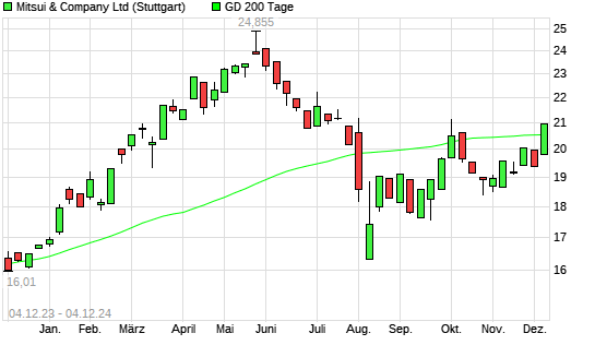 Mit dem Anstieg auf 21,12 EUR hat die Mitsui & Co-Aktie am 03.12.2024 die 200-Tage-Linie nach oben gekreuzt.