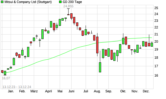 Mit dem Anstieg auf 20,79 EUR hat die Mitsui & Co-Aktie am 12.12.2024 die 200-Tage-Linie nach oben gekreuzt.