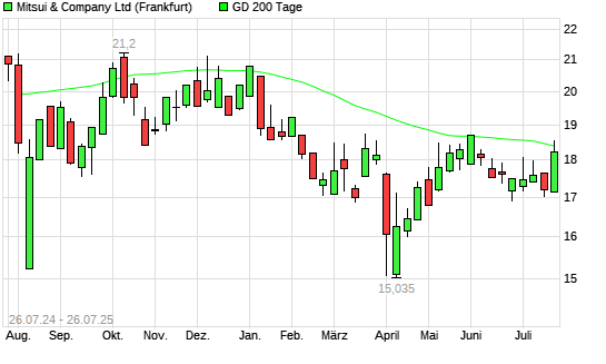 Mit dem Rücksetzer auf 18,23 EUR hat die Mitsui & Co-Aktie am 25.07.2025 die 200-Tage-Linie nach unten gekreuzt.
