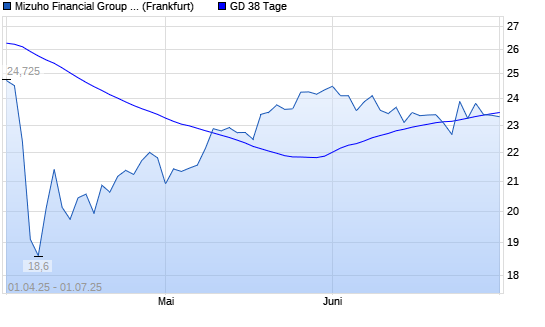 Mit dem Rücksetzer auf 23,37 EUR hat die Mizuho Financial Group-Aktie am 30.06.2025 die 38-Tage-Linie nach unten gekreuzt.