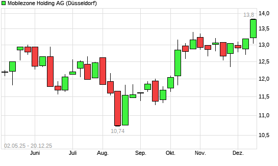 Mit dem Anstieg auf 13,58 EUR hat die Mobilzone-Aktie (ISIN CH0276837694) am 19.12.2025 ein neues 6-Monats-Hoch erreicht und damit den Kurs vom 18.12.2025 eingestellt.