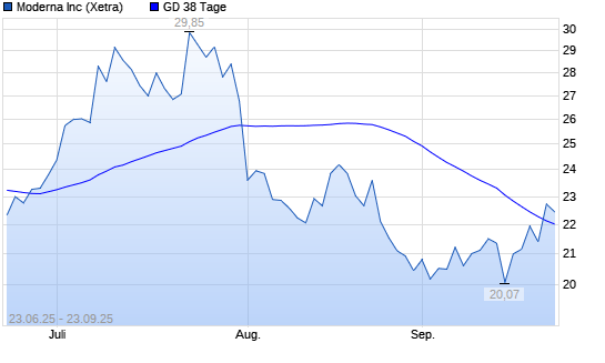 Mit dem Anstieg auf 22,59 EUR hat die Moderna-Aktie am 22.09.2025 die 38-Tage-Linie nach oben gekreuzt.