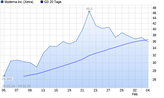 Mit dem Rücksetzer auf 34,99 EUR hat die Moderna-Aktie am 03.02.2026 die 20-Tage-Linie nach unten gekreuzt.