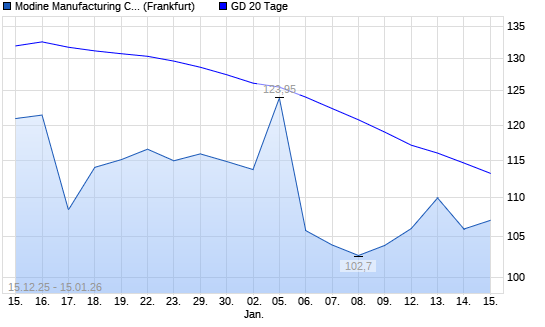 Mit dem Anstieg auf 115,10 EUR hat die Modine Manufacturing-Aktie am 14.01.2026 die 20-Tage-Linie nach oben gekreuzt.
