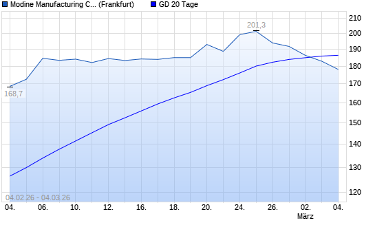 Mit dem Rücksetzer auf 182,85 EUR hat die Modine Manufacturing-Aktie am 03.03.2026 die 20-Tage-Linie nach unten gekreuzt.