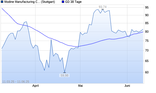Mit dem Rücksetzer auf 78,96 EUR hat die Modine Manufacturing-Aktie am 10.06.2025 die 38-Tage-Linie nach unten gekreuzt.