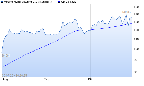 Mit dem Rücksetzer auf 126,90 EUR hat die Modine Manufacturing-Aktie am 29.10.2025 die 38-Tage-Linie nach unten gekreuzt.