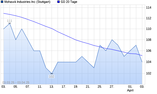 Mit dem Anstieg auf 105,00 EUR hat die Mohawk Industries-Aktie am 02.04.2025 die 20-Tage-Linie nach oben gekreuzt.