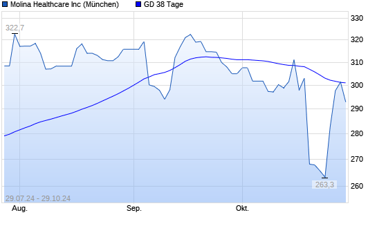 Mit dem Anstieg auf 300,90 EUR hat die Molina Healthcare-Aktie am 28.10.2024 die 38-Tage-Linie nach oben gekreuzt.
