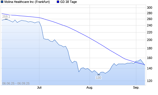 Mit dem Rücksetzer auf 145,60 EUR hat die Molina Healthcare-Aktie am 05.09.2025 die 38-Tage-Linie nach unten gekreuzt.