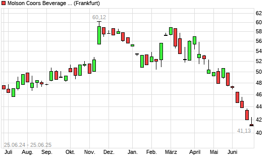Mit dem Rücksetzer auf 41,30 EUR hat die Molson Coors Brewing-Aktie (ISIN US60871R2094) am 24.06.2025 ein neues 3-Jahres-Tief erreicht und damit den Kurs vom 20.06.2025 eingestellt.