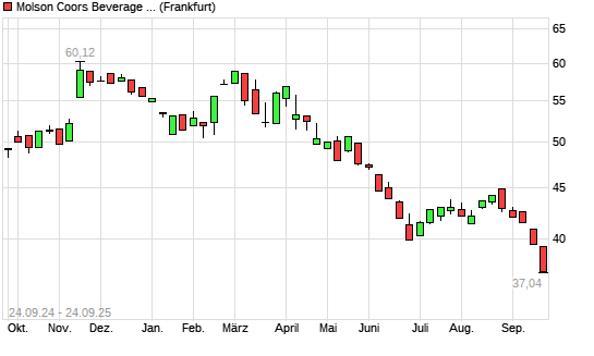 Mit dem Rücksetzer auf 37,96 EUR hat die Molson Coors Brewing-Aktie (ISIN US60871R2094) am 23.09.2025 ein neues 3-Jahres-Tief erreicht und damit den Kurs vom 22.09.2025 eingestellt.