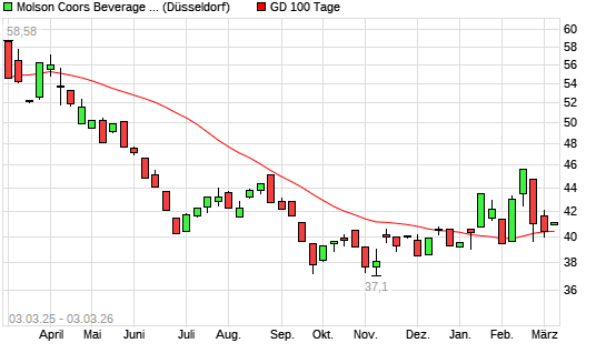 Mit dem Anstieg auf 41,20 EUR hat die Molson Coors Brewing-Aktie am 02.03.2026 die 100-Tage-Linie nach oben gekreuzt.