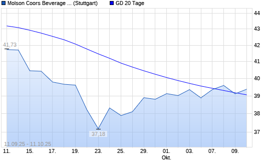 Mit dem Anstieg auf 39,41 EUR hat die Molson Coors Brewing-Aktie am 10.10.2025 die 20-Tage-Linie nach oben gekreuzt.