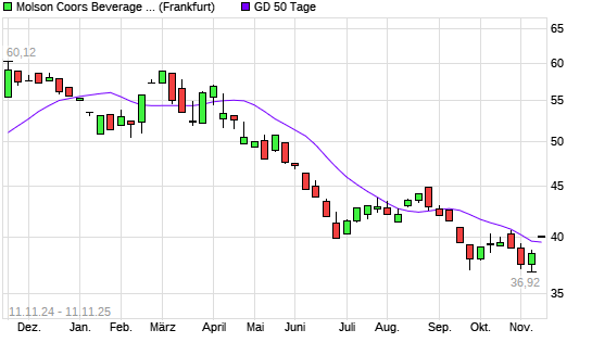 Mit dem Anstieg auf 39,98 EUR hat die Molson Coors Brewing-Aktie am 10.11.2025 die 50-Tage-Linie nach oben gekreuzt.