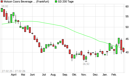 Mit dem Rücksetzer auf 39,75 EUR hat die Molson Coors Brewing-Aktie am 26.02.2026 die 200-Tage-Linie nach unten gekreuzt.