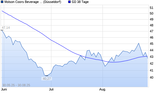 Mit dem Rücksetzer auf 42,88 EUR hat die Molson Coors Brewing-Aktie am 29.08.2025 die 38-Tage-Linie nach unten gekreuzt.