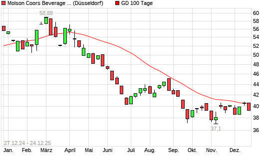 Mit dem Rücksetzer auf 39,57 EUR hat die Molson Coors Brewing-Aktie am 23.12.2025 die 100-Tage-Linie nach unten gekreuzt.Die Molson Coors Brewing-Aktie befindet sich seit ...weiterlesen