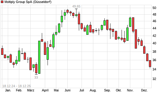 Mit dem Rücksetzer auf 35,70 EUR hat die Moltiply Group-Aktie (ISIN IT0004195308) am 17.12.2025 ein neues 6-Monats-Tief erreicht und damit den Kurs vom 16.12.2025 eingestellt.