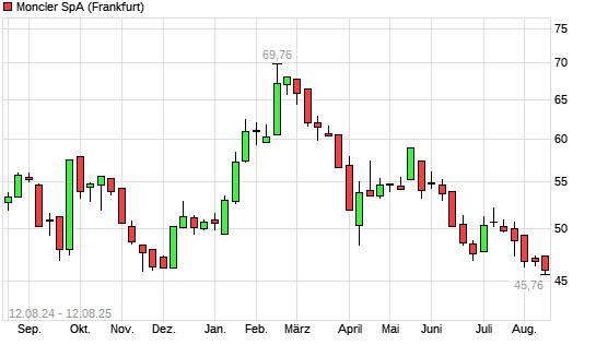 Mit dem Rücksetzer auf 45,76 EUR hat die Moncler-Aktie (ISIN IT0004965148) am 11.08.2025 ein neues 12-Monats-Tief erreicht und damit den Kurs vom 29.11.2024 eingestellt.