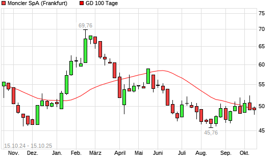 Mit dem Anstieg auf 49,92 EUR hat die Moncler-Aktie am 14.10.2025 die 100-Tage-Linie nach oben gekreuzt.