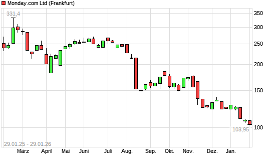 Mit dem Rücksetzer auf 105,50 EUR hat die Monday. Com-Aktie (ISIN IL0011762130) am 28.01.2026 ein neues All-Time-Low erreicht und damit den Kurs vom 19.01.2026 eingestellt.