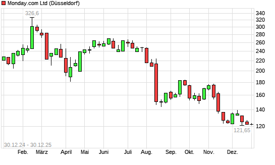 Mit dem Rücksetzer auf 122,95 EUR hat die Monday. Com-Aktie (ISIN IL0011762130) am 29.12.2025 ein neues 12-Monats-Tief erreicht und damit den Kurs vom 19.12.2025 eingestellt.Die Monday. ...weiterlesen