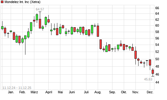 Mit dem Rücksetzer auf 45,82 EUR hat die Mondelez-Aktie (ISIN US6092071058) am 10.12.2025 ein neues 3-Jahres-Tief erreicht und damit den Kurs vom 09.12.2025 eingestellt.
