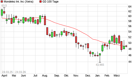 Mit dem Anstieg auf 48,87 EUR hat die Mondelez-Aktie am 23.03.2026 die 100-Tage-Linie nach oben gekreuzt.