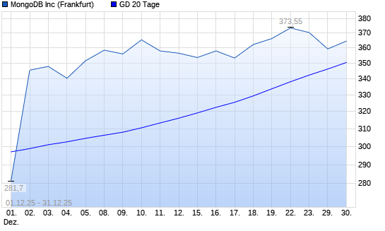 Mit dem Anstieg auf 364,55 EUR hat die MongoDB-Aktie am 30.12.2025 die 20-Tage-Linie nach oben gekreuzt.