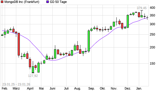 Mit dem Anstieg auf 342,10 EUR hat die MongoDB-Aktie am 22.01.2026 die 50-Tage-Linie nach oben gekreuzt.