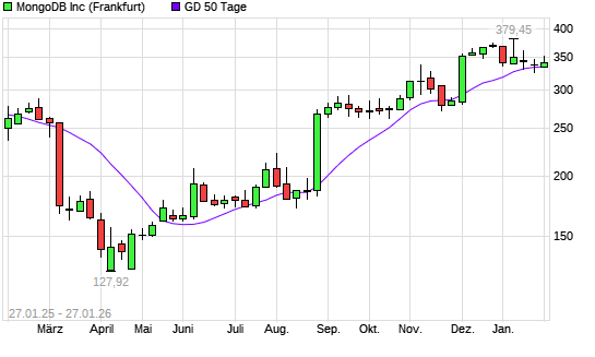 Mit dem Anstieg auf 345,40 EUR hat die MongoDB-Aktie am 26.01.2026 die 50-Tage-Linie nach oben gekreuzt.
