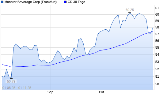 Mit dem Anstieg auf 58,04 EUR hat die Monster Beverage-Aktie am 31.10.2025 die 38-Tage-Linie nach oben gekreuzt.