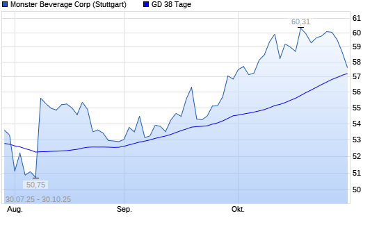 Mit dem Rücksetzer auf 57,12 EUR hat die Monster Beverage-Aktie am 29.10.2025 die 38-Tage-Linie nach unten gekreuzt.