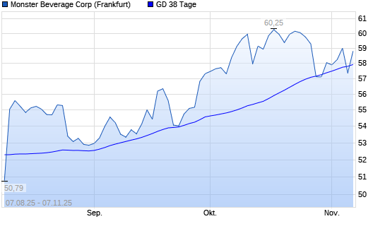 Mit dem Rücksetzer auf 57,37 EUR hat die Monster Beverage-Aktie am 06.11.2025 die 38-Tage-Linie nach unten gekreuzt.