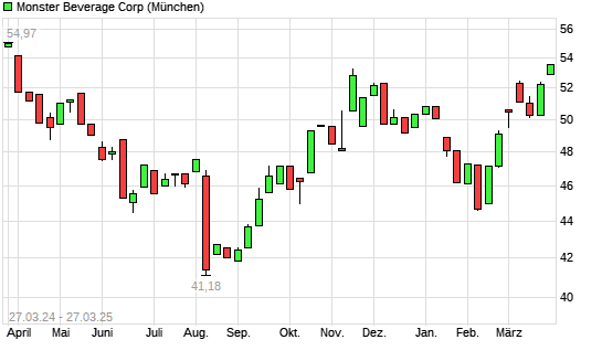 Mit dem Anstieg auf 53,67 EUR hat die Monster Beverage-Aktie (ISIN US61174X1090) am 26.03.2025 ein neues 6-Monats-Hoch erreicht und damit den Kurs vom 25.03.2025 eingestellt.Die Monster Beverage-Aktie ...weiterlesen