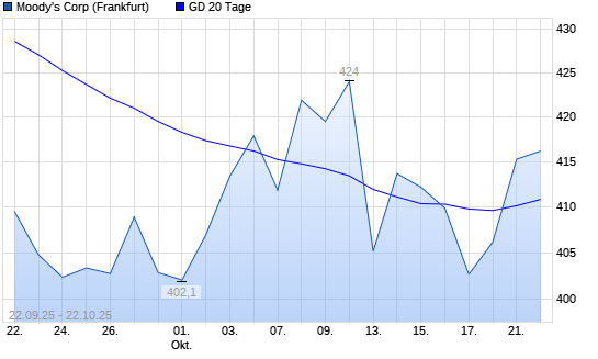 Mit dem Anstieg auf 415,30 EUR hat die Moody‘s-Aktie am 21.10.2025 die 20-Tage-Linie nach oben gekreuzt.