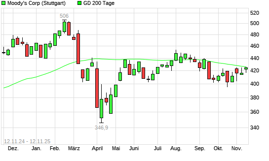 Mit dem Anstieg auf 426,90 EUR hat die Moody‘s-Aktie am 11.11.2025 die 200-Tage-Linie nach oben gekreuzt.