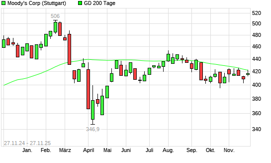 Mit dem Rücksetzer auf 416,90 EUR hat die Moody‘s-Aktie am 26.11.2025 die 200-Tage-Linie nach unten gekreuzt.