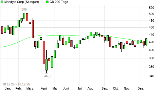 Mit dem Rücksetzer auf 418,20 EUR hat die Moody‘s-Aktie am 17.12.2025 die 200-Tage-Linie nach unten gekreuzt.
