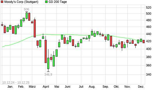 Mit dem Rücksetzer auf 415,90 EUR hat die Moody‘s-Aktie am 09.12.2025 die 200-Tage-Linie nach unten gekreuzt.Die Moody‘s-Aktie befand sich seit dem 05.12.2025 im ...weiterlesen