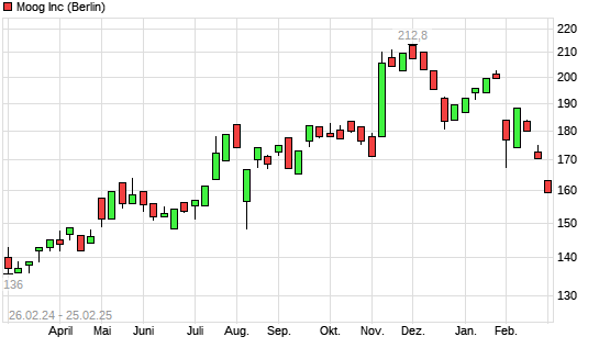 Mit dem Rücksetzer auf 163,20 EUR hat die Moog-Aktie (ISIN US6153942023) am 24.02.2025 ein neues 6-Monats-Tief erreicht und damit den Kurs vom 09.09.2024 eingestellt.